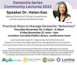 Join Dr. Helen Kao for a presentation on Practical Ways to Manage Dementia “Behaviors”